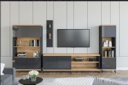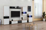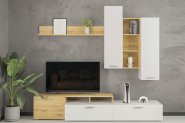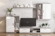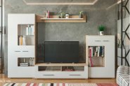В комплект входит: тумба RTV 1s/4/11 - 2 шт., тумба RTV 2s/4/12 - 1 шт., полка PAN 2/12 - 1 шт., полка-витрина SFW 2w/2/12 1 шт., витрина настенная SFW 1w/12/4 - 4 шт.