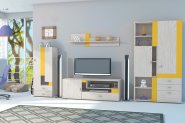 В комплект входят: пенал 1В1Д, полка, тумба ТВ 2Д1Ш, комод 1В1Д