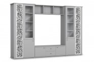 В комплект входят следующие элементы: витрина REG 1W2S, тумба RTV1S, Комод KOM 4S, полка SFW/103, стеллаж REG 2S (N).