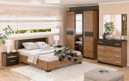 В комплект входит: прикроватные тумбочки - 2шт, комод, зеркало, кровать 1,6, шкаф 3-Д (на фото шкаф 5-Д)