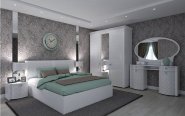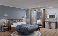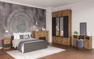 В комплект входит: тумба прикроватная - 2шт, кровать 1,6, комод 4Ш, зеркало, туалетка, шкаф 4Д.