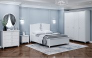 В комплект входит: тумба прикроватная - 2шт, кровать с мягким быльцем, комод, зеркало, шкаф 4Д.