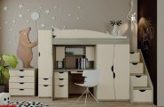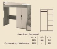 Производитель: Світ меблів Краткое описание: Кровать-горка Савана Ширина:1950 Высота:1805 Глубина:860 Спальное место 1900*800 В комплектацию не входит стол, тумба, надставка и ступени-комод |
