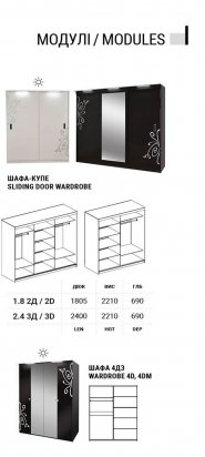 Шкаф 4Д (зеркальный): 1780х2175х690 |