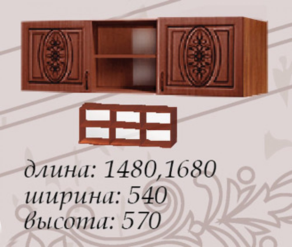Производитель: Мастер Форм Краткое описание: Антресоль над кроватью 1600 Василиса Ширина:1680 Глубина: 540 Высота:570 |