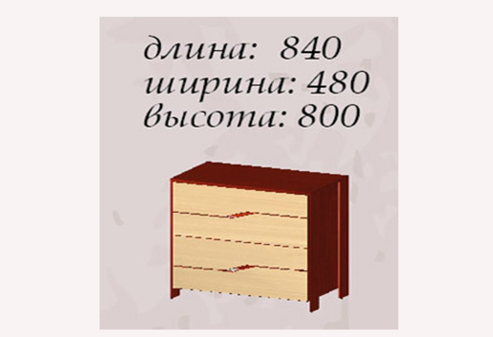 Производитель: Мастер Форм Краткое описание: Комод Доминика МФ Длина: 840 Ширина: 480 Высота: 800 |