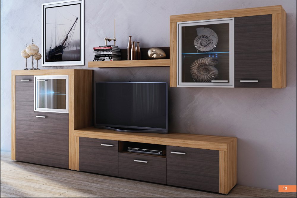 В комплект входят: тумба, тумба ТВ, полка, тумба подвесная.