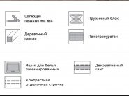 Наполнение: пружинный блок, пенополиуретан, деревянный каркас