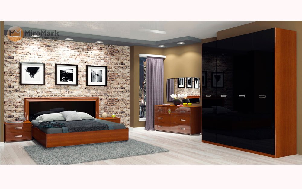 Спальня Белла глянец черный/вишня бюзум Миромарк