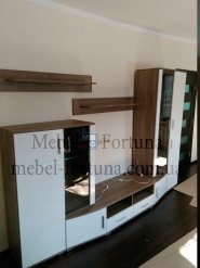 Горка в гостиную Альба Світ Меблів смотрится очень нежно благодаря сочетанию белого глянца природного оттенка дуб трюфель. Навесные полки и подствека витрина придают дополнительной легкости. Гарнитур состоит из двух витрин разной высоты, тумбы-ТВ и навесных полок для декора.