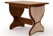 Раскладной обеденный стол КС-4 Компанит - еще один вариант бюджетного стола от производителя Компанит. Изюминкой стола является декор в виде накладок другого цвета на боковые стойки. Стол смотрится очень интересно. Благодаря большому выбору цветов стол можно скомбинировать в любом цветовом решении, которое идеально подойдет под Вашу обставноку. В дополнение к столу можно приобрести уголок и табуреты и получить полноценный кухонный комплект.