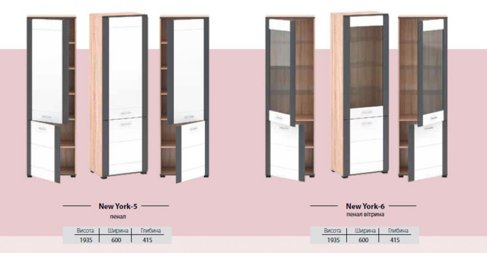 | 6 | New York6, пенал-витрина | 60×41,5×194 | 5059 |