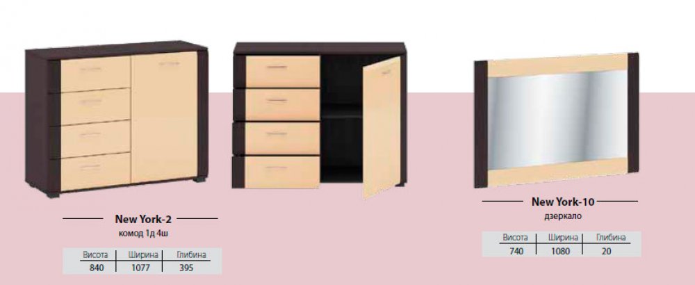 | 2 | New York2, комод 1Д4Ш | 108×39,5×84,5 | 5179 |