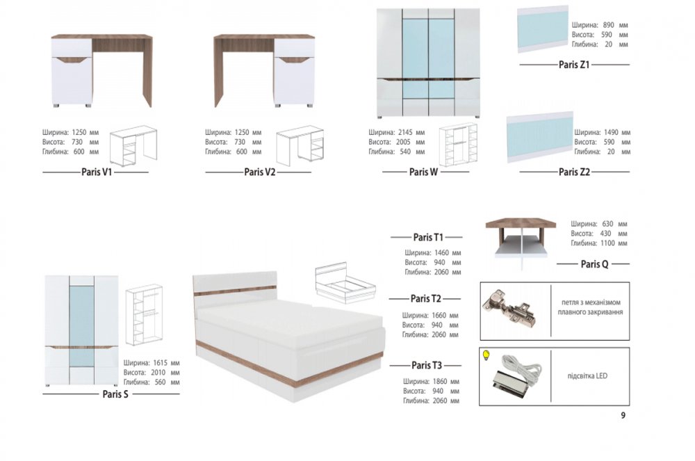 | 11 | Paris S, шкаф платяной 3Д | 161,5×56×201 | 11172 |