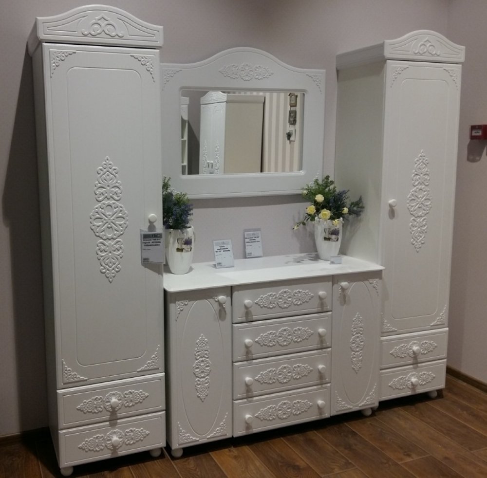 Мебель Белль от производителя Санти-Мебель выполнена в аристократическом цвете белое дерево. Оригинальный объемный 3D узорпридает комплекту Белль роскошный вид, при этом цена остается доступной. Большое количество предметов, которые входят в комплект Белль позволят создать подходящий именно Вам по размер детскую или подростковую, а также можно создать спальню или гостинную.