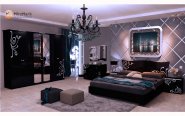 Спальня Богема черный глянец МироМарк - эта спальня не оставит никого равнодушным. Черная глянцевая расцветка завораживает и настоящие ценители "чего-нибудь эдакого" будут просто в восторге. Четкие геометричные линии отлично гармонируют с узором цвета металлик на черном глянцевом фоне. Округлый орнамент перекликается с изогнутым изголовьем кровати. Черная расцветка создает космический неземной эффект. Спальный гарнитур Богема Миромарк включает большое разнообразие шкафов с зеркальными фасадами и без, кровать может с подъемником и без.