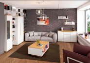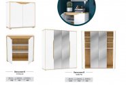 Стенка в гостинную Vancouver Blonski - еще одна система из мебельной линейки, в которой сочетаются белый цвет и натуральный оттенок. Через всю систему проходят разнообразные геометрические линие: обрамление фасадов, округлые стеклянные вставки, модифицированные ручки, прямоугольные ножки. Выиграшным является и сочетание глянцевых и матовых поверхностей. Мебель Ванкувер Блонски включает большое количество шкафов, пеналов, витрин, тумб-ТВ, что позволяет создать максимально комфортную и стильную обстановку в апартаментах.