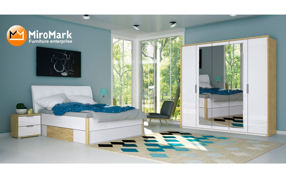 Спальня Флоренция Миромарк - своременная спальня в трендовом цветовом сочетании белый глянец и натуральный оттенко ман-марино. Венцом гарнитура является кровать со спальным местом 180*200, уютным мягким изголовьем и подкроватным ящиком. Она займет свое почетное место в любой спальне. В гарнитур входит огромный выбор шкафов: распашные или шкафы-купе, с зеркалами и без, с разным количеством дверей и размером. Шкафы могут докомплектоваться полками разныз размеров и модификацмй, тумбой, шкафы-купе - карнизом.