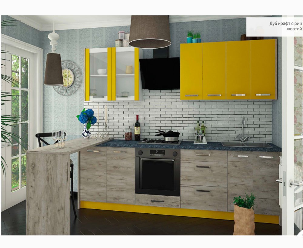 Кухня Шарлотта 2,4 дуб крафт серый желтый