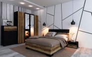 Спальня Соломон Висент производится в темном или светлом цвете с фасадами дуб лейбл корабельный или дуб тахо. Гарнитур смотрится очень интересно в любой расцветке, а вставки имитирующие отпечатки старой газеты делают мебель оригинальной. Интересными будут и фасады под натуральную древесину в цвете дуб тахо. Комплект включает все необходимые предметы: прикроватные тумбочки двух видов, три вида комодов, кровать, 2-х и 3-хдверные шкафы с зеркалом и без. Но сейчас коллекция очень расширилась за счет модуль в стиле Лофт. Это и полки навесные, тумба ТВ, несоклько видов столов, стеллаж. В гарнитур также входит шкаф-купе на 2 или 3 двери, который декорирован своеобразнвм фасадом с ричунком в стиле Лофт.