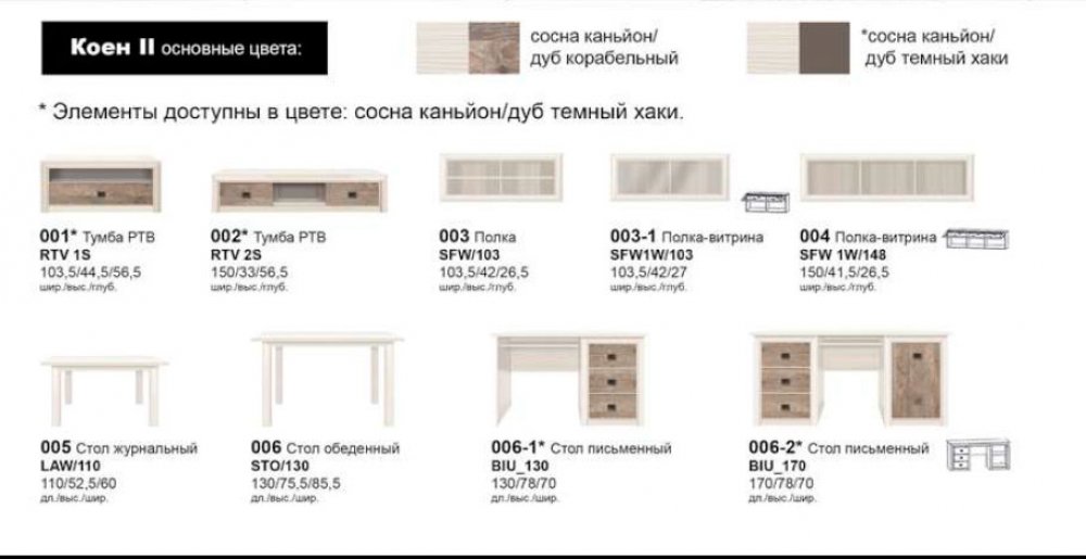 | Элементы | Цена, сосна каньон/дуб корабельный |