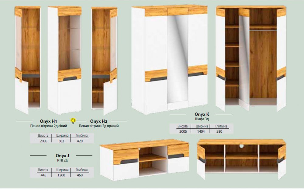 | Пенал-витрина 2д ONYX H1 правый | ш502*в2000*гл420 | 4382 |