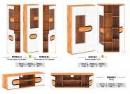Модульная система Родан Блоснки объединяет в себе три цвета - белый, дуб крафт золотой и черную окантовку, как кошка-черепашка. И она не менее загадочна. Есть элементы симметричные, есть асимметричные, но абсолютно все элементы выполнены в одном стиле и создают единый ансамбль. Июминкой этого гарнитура является декоративная вставка овальной или полуовальной формы в цвете дуб крафт золотой, которая очень четко очерчена черной окантовкой. Такой декор очень броский и смотрится непревзойденно на белом глянцевом фоне. Система предназначена для меблировки гостиной, кабинета, спальни.