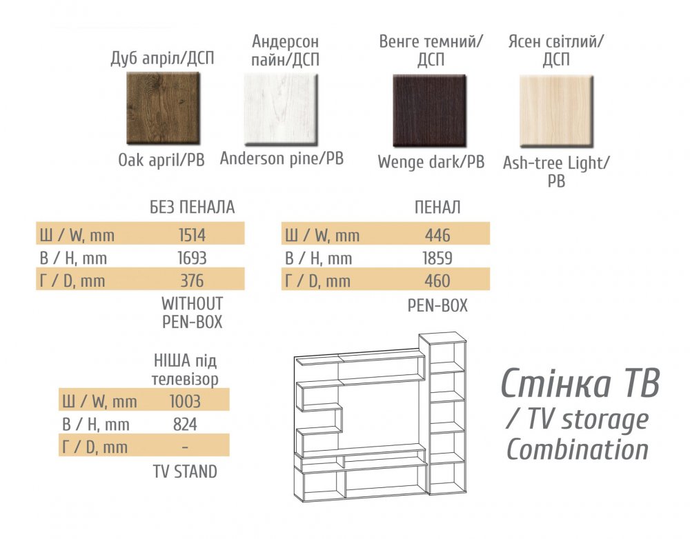 Производитель: Мебель-Сервис Краткое описание: Стенка Ферара темная МС Ширина: 1960 Высота: 1859 Глубина: 460 Ниша ТВ: в824*ш1003 |
