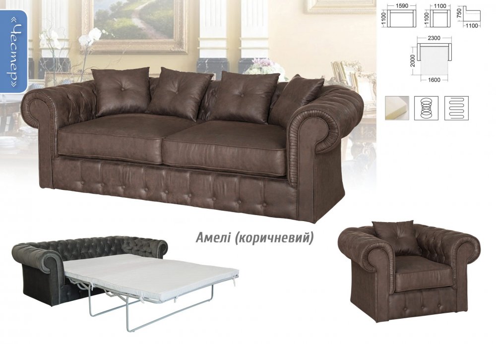 Производитель: Мебель-Сервис Краткое описание: Диван Честер (раскладной) МБ Высота: 750 Ширина: 2300 Глубина: 1100 Спальное место: 1600*2000 Цена указана за ткань Амели коричневый |