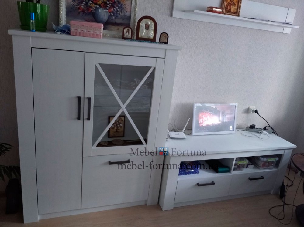 Любителей светлой мебели очень порадует мебель Эшли Свит Меблив. Одним из модных тенденций в интерьере является скандинавский стиль. Ему очень соотвествует мебель Эшли: это светлый цвет сосна водевиль, выраженная древесная структура, витрины и некоторые фасады декорированы перекрестными планками. Мебельный гарнитур Эшли имеет очень широкий ассортимент для меблировки гостинной, спальни, прихожей. Практически каждый предмет имеет несколько вариантов размеров и модификаций. Однозначно всее модули несут свет и уют: много открытых секций и стеклянных витрин. Цвет сосна водевиль очень гармонично разбавлен черными ручками.