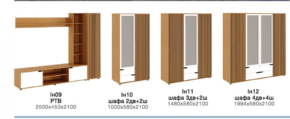 | ІН10 | Шафа 2дв+дз+2ш | 1000*580*2100 | 8199 |