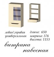 Производитель: Мастер Форм Краткое описание: Витрина навесная Аякс Длина: 650 Высота: 1153 Ширина: 376
