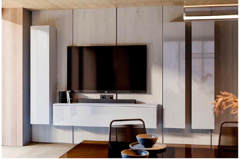 Стенка Бокс TV-1 - это три вертикальных шкафа и навесная тумба ТВ. Проще некуда, но выглядит роскошно