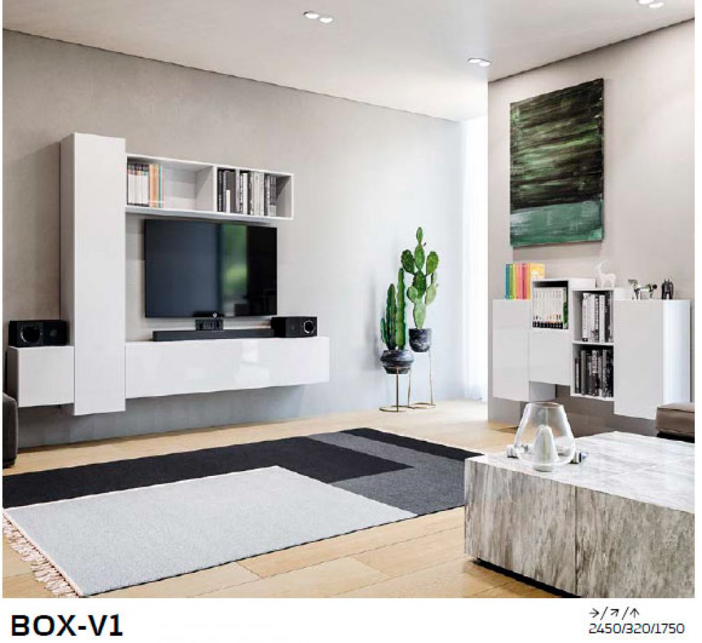 Все стенки Бокс разделены на несколько коллекций. Коллекция с буковкой V в названии имеет ряд отличий. В комплектацию стенок из этой коллекции входят открытые ячейки.