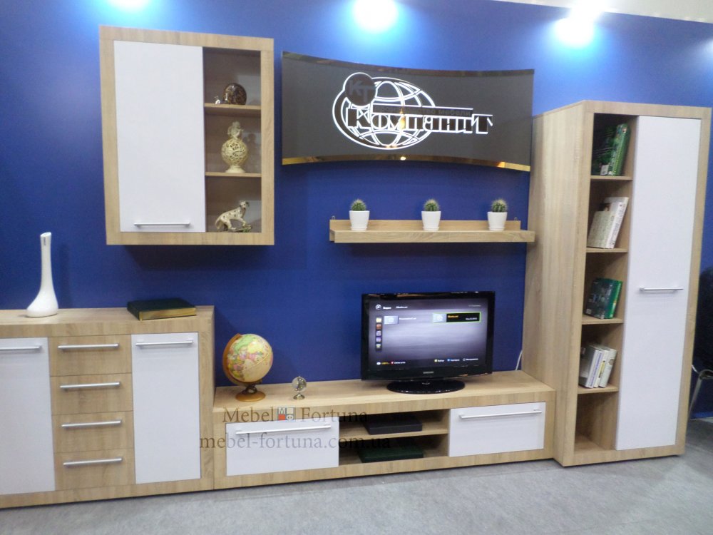 Купить модульную систему в гостиную. Мебельная фабрика Компанит продолжает линейку модульных систем в гостинную. МГ-1 Компанит - одна из самых многочисленных по модулям. В гарнитур входит тумба ТВ, пара вариантов навесной тумбы, несколько вариантов напольных тумб. Любая композиция может по необходимости дополняться полками или любыми другими предметами от это го производителя.