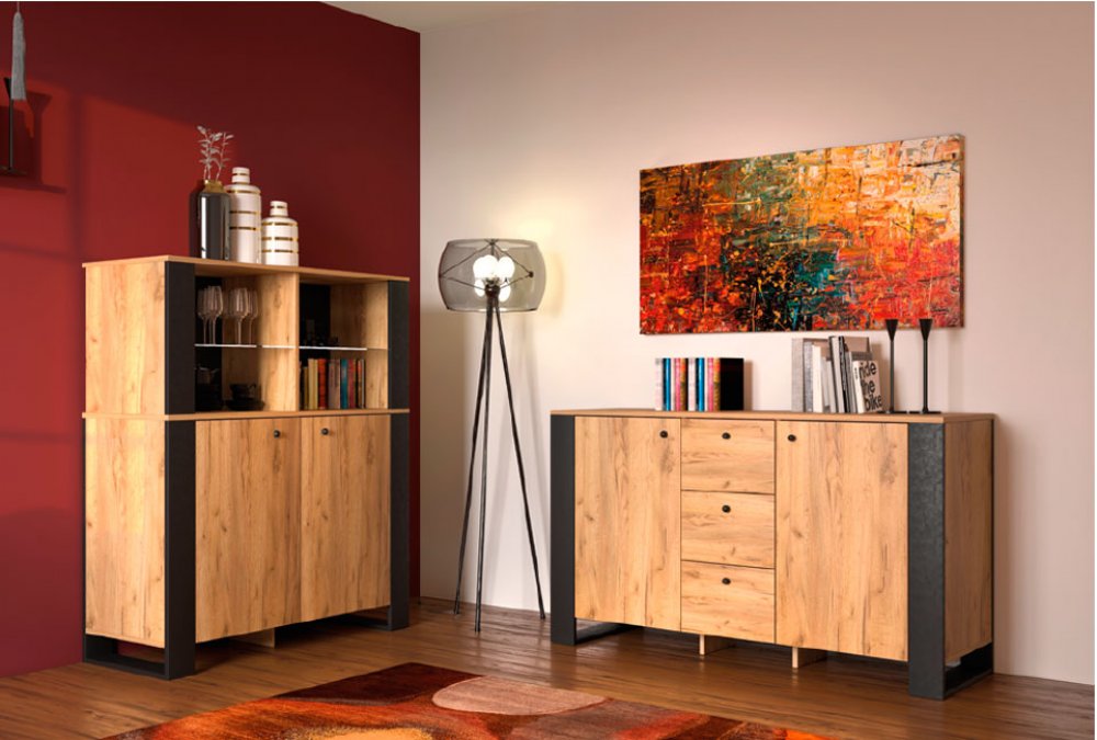 Стенка Олд Вуд Сокме - это очень интересное сочетание черных вставок и натурального цвета дуб крафт золотой. Фасады как будто бы заключены в толстые черные рамки и тем часым натуральный цвет дуб крафт золотой еще более подчеркнут. Мебель Олд Вуд Сокме относится к адаптированному стилю Лофт. Декоративные планки помогут визуально скорректировать высоту помещения. Контраст приятной древесной текстуры и подсветка гармонично балансируют дизайн и создают уют в Вашем жилье.