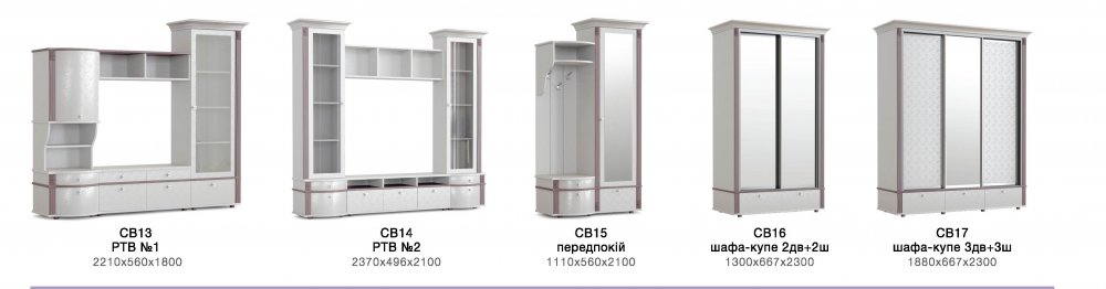 | СВ17 | Шафа купе 3дв+3ш | 1880*667*2300 | 20658 |
