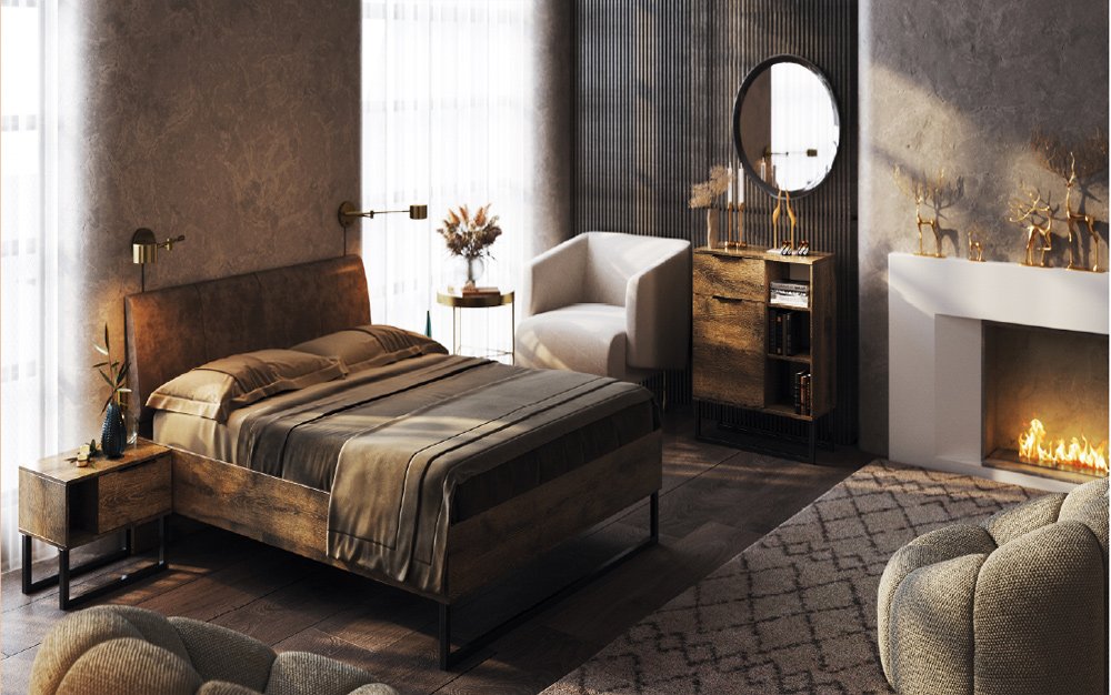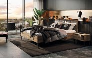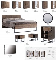 Спальня в стиле лофт появилась в ассортименте фабрики Миромарк и она называется Квадро. Этой спальне присущи все основные черты стиля лофт: цвет дуб фрегат, металлические каркасы, лаконичные линии. Как обычно для фабрики Миромарк представлена широкая линейка шкафов с разным количеством дверей, с зеркалами и без, разной ширины. Кровать из гарнитура Квадро имеет мягкое изголовье под основной цвет спальни. Любители стиля Лофт будут довольны.