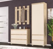 Купить модульную прихожую. Все больше и больше стает востребованная модульная мебель. Это коснулось и прихожих. Именно прихожая Торино является прекрасным тому примером. Во первых, она производится в двух трендовых расцветках. Во вторых, Вы можете самостоятельно подобрать гарнитур подходящий именно Вам по размеру и комплектации. В состав гарниутра входит маленькая стандартная прихожая, два варианта вешалок, два варианта комодов, пенал, тумба и зеркало.