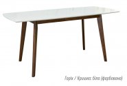 Все больше и больше популярности набирают контрастные столы с темным каркасом и белой столешницей. Такие изделия оживляют интерьер, делают его более ярким и придают свежести. Кроме внешнего вида, стол имеет и полноценную практическую сторону. Он раскладывается и превращается в довольно большой полноценный стол.