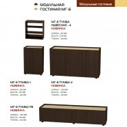 Купить современную стенку недорого. Стенка МГ-6 от фабрики Компанит продолжает новую коллекцию свовременной мебели. В гарнитур входит четыре вида навесных тумб, два журнальных столика, две напольные тумбы и тумбу ТВ. Мебель выполнена с учетом всех трендовых веяний: отсутствие декора, скрытые ручки, богатая цветовая гамма, возможность комбинированных расцветок. Наличие навесных элементов позволяет разгрузить стенку, сделать ее более легкой.