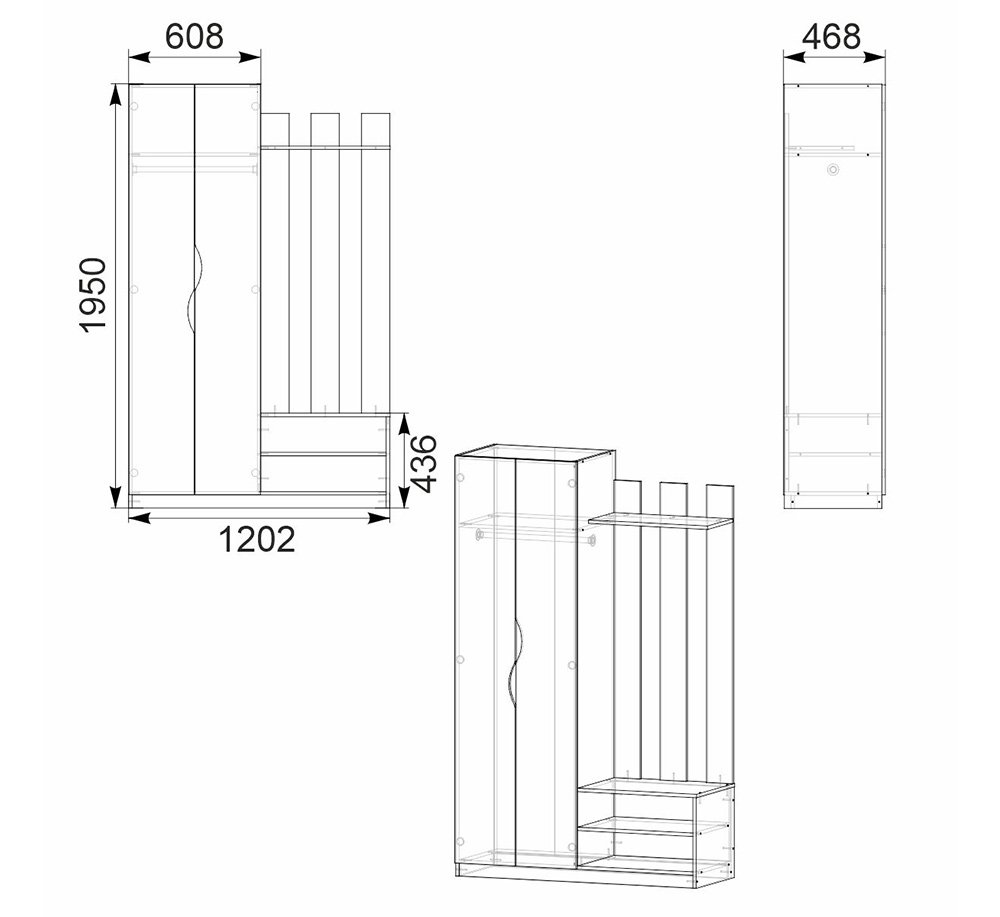 Производитель: Компанит Краткое описание: Прихожая Нина Компанит ширина: 1202 высота: 1950 глубина: 468 |