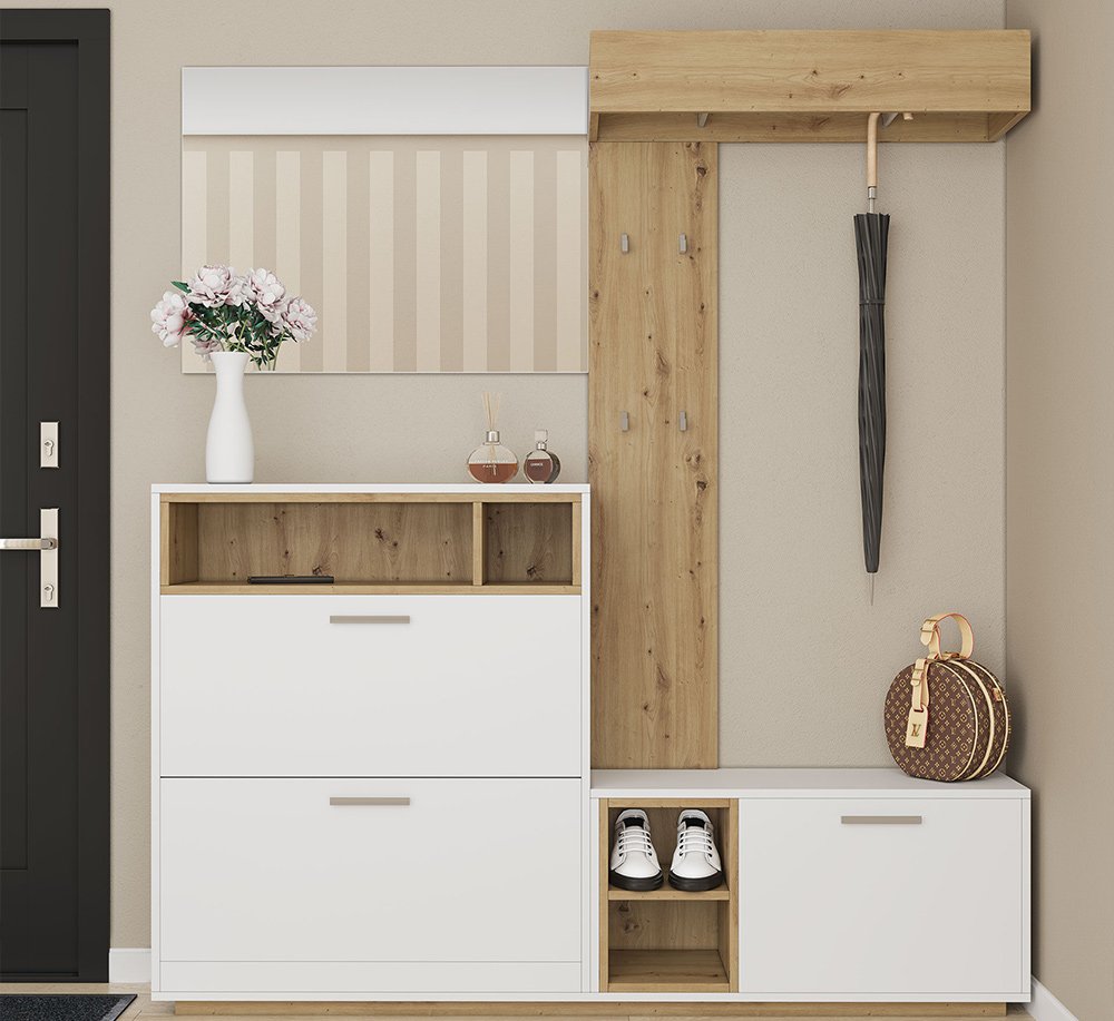 Купить прихожую в стиле Лофт Хайди Свит Меблив. Эта прихожая имеет необычный дизайн и трендовые расцветки. Комплект изготавливается в цвете дуб артизан с белыми или антрацитовыми фасадами. В комплектацию входит зеркало, две тумбы с закрытыми отделениями и открытыми отделениями в контрастной расцветке, вертикальная вешалка - панель с крючками и отделения со штангами. Прихожая выглядит очень гармонично и прекрасно дополнит Ваше жилье.