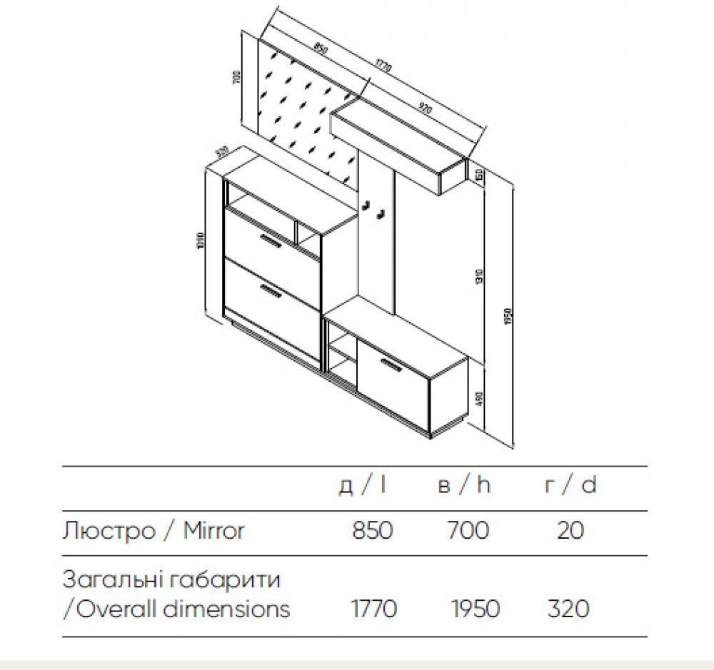 Производитель: Світ меблів Краткое описание: Прихожая Хайди светлая СМ Ширина: 1770 Высота: 1950 Глубина: 320 |