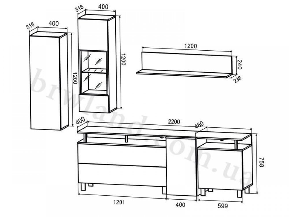 Производитель: BRW Украина Краткое описание: Стенка Арс БРВ Ширина: около 2600 Глубина: 236-400 |