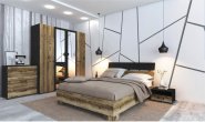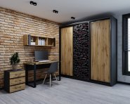 Спальня Соломон Висент производится в темном или светлом цвете с фасадами дуб лейбл корабельный или дуб тахо. Гарнитур смотрится очень интересно в любой расцветке, а вставки имитирующие отпечатки старой газеты делают мебель оригинальной. Интересными будут и фасады под натуральную древесину в цвете дуб тахо. Комплект включает все необходимые предметы: прикроватные тумбочки двух видов, три вида комодов, кровать, 2-х и 3-хдверные шкафы с зеркалом и без. Но сейчас коллекция очень расширилась за счет модуль в стиле Лофт. Это и полки навесные, тумба ТВ, несоклько видов столов, стеллаж. В гарнитур также входит шкаф-купе на 2 или 3 двери, который декорирован своеобразнвм фасадом с ричунком в стиле Лофт.