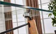 Стеклянный стол в кухню Эверест Миксмебель. Стеклянная мебель всегда притягивает. Всегда интересно много ли она выдержит, а какой вид под столом, как ее вытирать, чтобы она была прозрачная. И стол Эверест Миксмебель - это прекрасная возможность ответить на все эти вопросы. Стол нераскладной , столешница с заокругленными углами, оптимальной толщины. Ножки выполнены из дерева, но крепления металлические. И если смотреть на столешницу, то прекрасно видно хитросплетение металла и дерева.